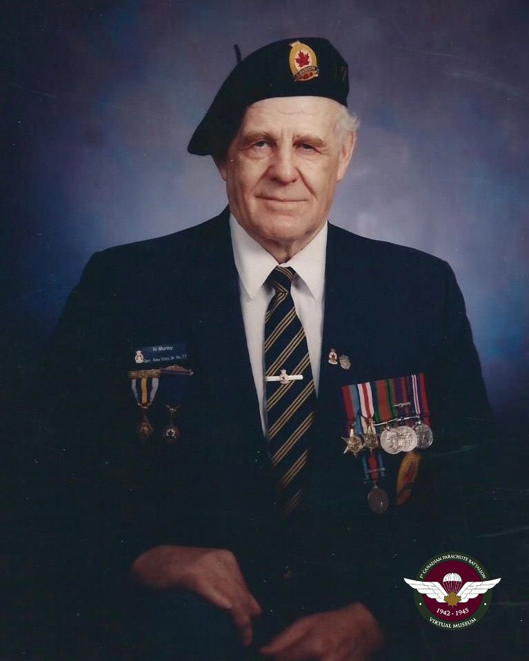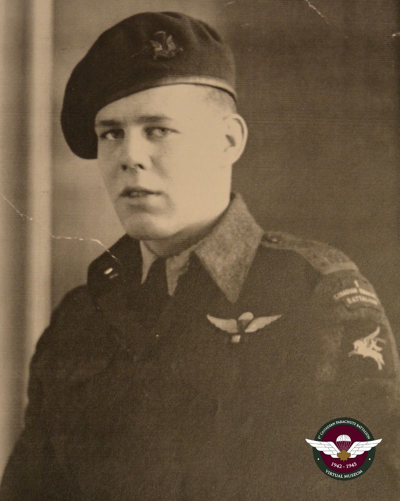 On December 24, 1942, at the age of 18, Allan enlisted in the army after being turned down at the age of 16. The first few weeks in the army were extremely tough for Allan when he caught the measles, mumps and Scarlet Fever and was hospitalized. When he first joined up he was asked 'What branch of service do you want to be in?'. When he responded with 'I want to be a paratrooper', having been 5'9" and 134lbs, the clerk laughed out loud before he wrote it down. Allan completed his basic and advanced Infantry training at Camrose Alberta and then volunteered to go to Suffield gas experiment station for a couple of months. There he was exposed to many tests with poison gases, for which he was compensated later in life by the government for a sum of $24,000. After leaving Suffield, Allan requested a transfer to the Paratroopers.