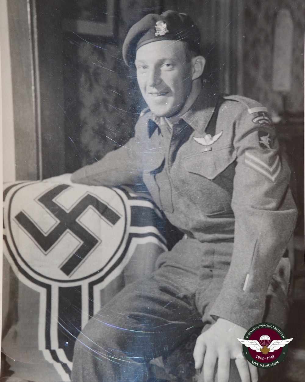 Topham completed his Parachute Course at Fort Benning, Georgia U.S.A. on March 12, 1943 and embarked shortly after to the UK on July 24, 1943 to be taken on strength with the Battalion. For the next several months, Cpl Topham would train in preparation for the invasion of Normandy. As June 6, 1944 approached, Cpl Topham became ill and was unable to jump with the Battalion so he ended up travelling to Normandy by ship to join the Battalion for the D-day invasion. He was fortunate enough to depart from Normandy with the Battalion back in England unscathed to prepare for the next operation.